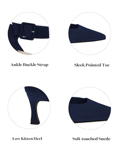 More information about Coutgo Womens Kitten Low Heels Closed Pointed Toe Ankle Buckle Strap Pumps Suede Dress Wedding Shoes