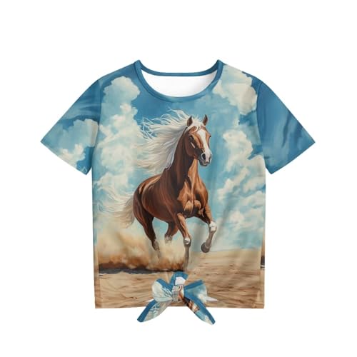 Novelty Girls Tie Front Top Summer Short Sleeve T Shirts Casual Crewneck Tops for Kids Size 5-12 7