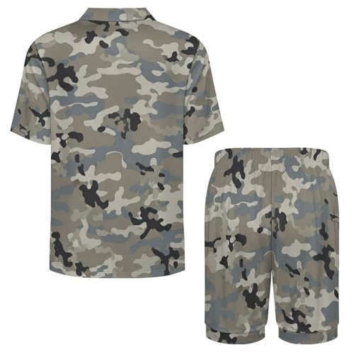 HOT ! Men's Summer Short Sleeve Loungewear Army Camouflage 3D Print Art Lightweight Pajama Set Two Piece Soft Sleepwear Nightwear
