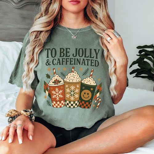 HOT ! To Be Jolly and Caffeinated Christmas Sweatshirt, Xmas Coffee Lover Tee, Comfort Colors Holly Jolly Hoodie, Cute Family Christmas Pajamas, Merry Christmas Crewneck