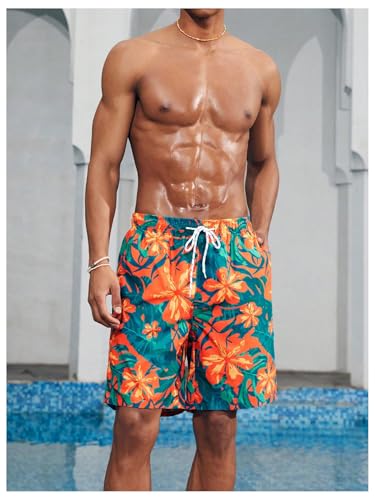 More information about OYOANGLE Men's Swim Trunks Floral Print Drawstring Waist Summer Swimwear Beach Shorts Bathing Suit
