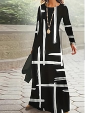 More information about Women's Maxi Dress Shift Dress A Line Dress Casual Boho Daily Date Going out Regular Fit Graphic Geometric Tie Dye Long Sleeve Crew Neck Black Spring Fall Winter Autumn