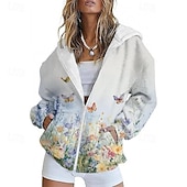 More information about Women's Casual Jacket Comfortable Pocket Print Sports Fashion Outdoor Butterfly Casual Daily Weekend Zipper Regular Hooded Regular Fit Long Sleeve Outerwear Black Sky Blue Spring Fall