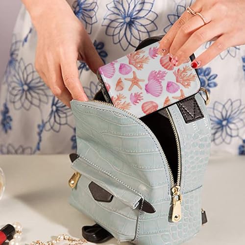 Women's Ocean Starfish Coral Shell Conch Credit Card Holder Wallet Leather Zipper Card Case for Ladies Girls 20301143 6