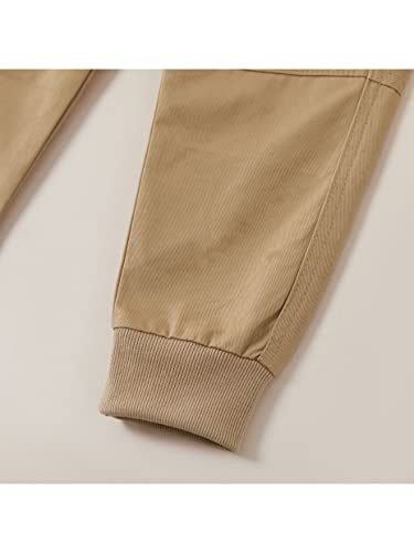Kid Boy Casual Pocket Design Cotton Cargo Pants Khaki 1