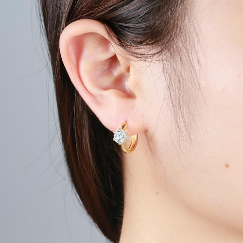 Sereney Sterling Silver Gold Hoop Earrings, 14k Gold Huggies Earrings for Women as Cubic Zirconia Earring, Gold Jewelry With 0.5CT High-Carbon Diamond as Hypoallergenic Hoop Earring For Women 6