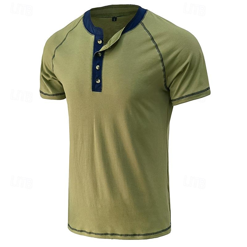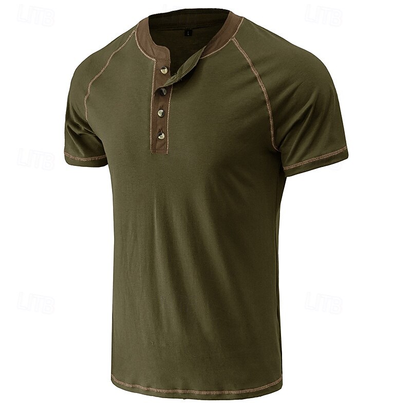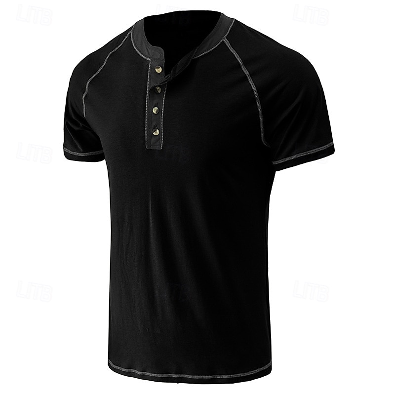More information about Men's Button T Shirt T Shirt Henley Shirt Short Sleeve Shirt Short Sleeve Henley Summer Color Block Solid / Plain Color Fashion Designer Fashion Vacation Street Going out Dark Grey Wine Black Top Tee