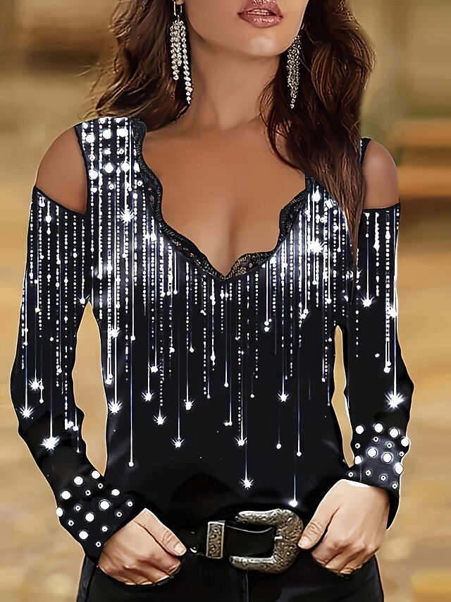 More information about Women's Blouse Daily Stylish Long Sleeve V Neck Regular Tops Daily Holiday Going out Cut Out Print Black Blue Purple Summer Spring
