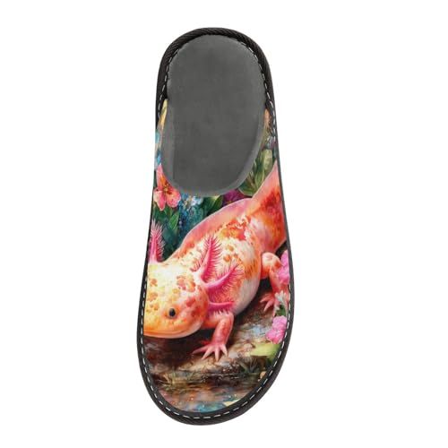 More information about Slippers for Women Colorful Axolotl in Floral Garden Soft Fuzzy Women's Slippers Indoor and Outdoor Shoes