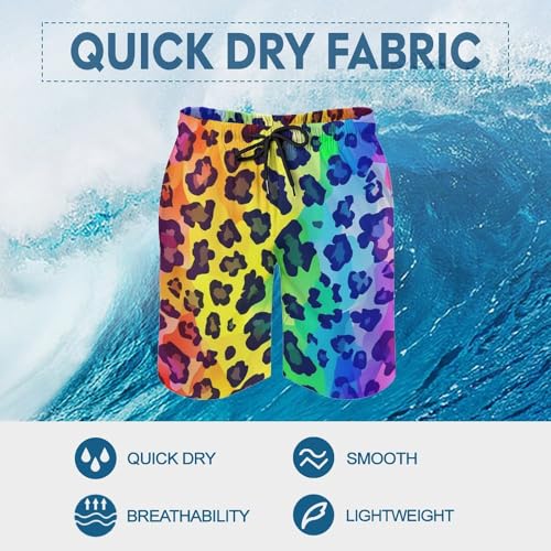Rainbow Leopard Print Men's Swim Trunks Breathable Bathing Suit Swimming Board Shorts Hawaiian Beach Swimwear 6