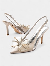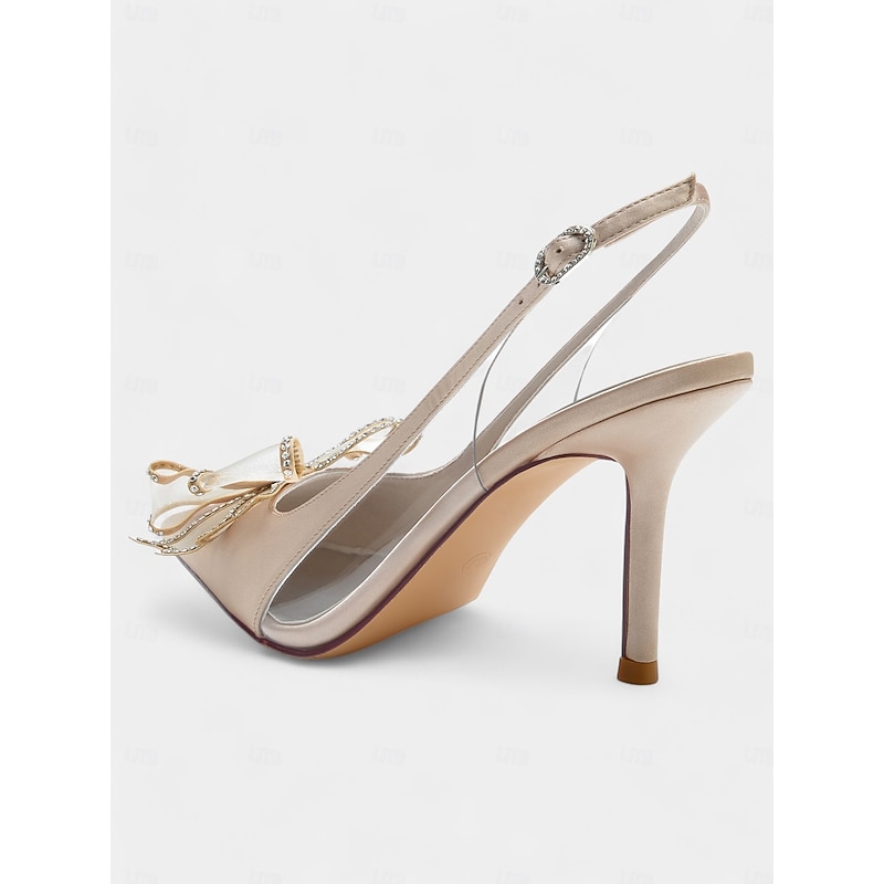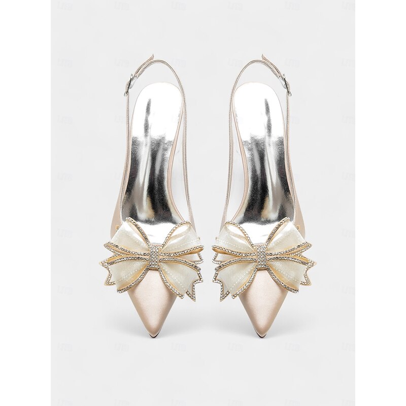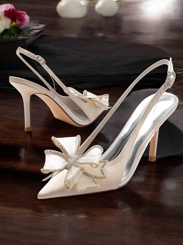 HOT ! Pointed-Toe Stiletto Wedding Heels for Women – Elegant Slingback Bridal Shoes with Rhinestone Bow Design
