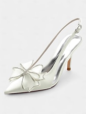 Pointed-Toe Stiletto Wedding Heels for Women – Elegant Slingback Bridal Shoes with Rhinestone Bow Design 17