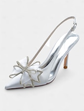 Pointed-Toe Stiletto Wedding Heels for Women – Elegant Slingback Bridal Shoes with Rhinestone Bow Design 15