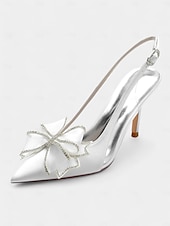 Pointed-Toe Stiletto Wedding Heels for Women – Elegant Slingback Bridal Shoes with Rhinestone Bow Design 16