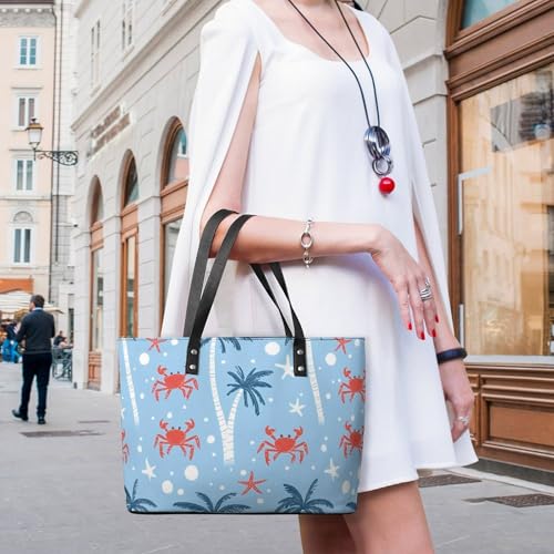 Crab Starfish Palm Tree Polka Dots Women's Leather Handbag Shoulder Bag Tote Purse Bags for Shopping Travel 7