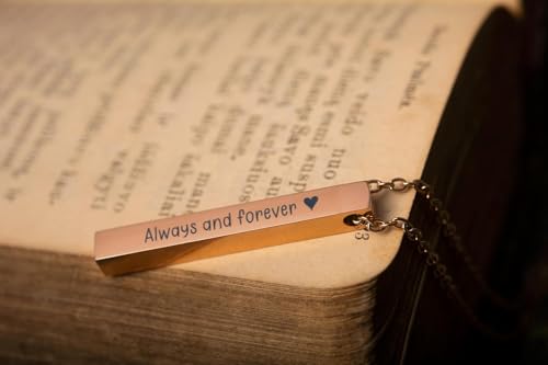 Personalized Necklace With Secret Morse Code - 4 Sides Engraved 3D Verticat Bar Pendant with Custom Text, Jewellery Gift for Boyfriend or Girlfriend (KP.2) (Gold, Chain length: 24") 7