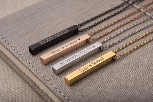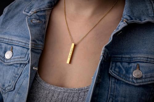 More information about Personalized Necklace With Secret Morse Code - 4 Sides Engraved 3D Verticat Bar Pendant with Custom Text, Jewellery Gift for Boyfriend or Girlfriend (KP.2) (Gold, Chain length: 24")