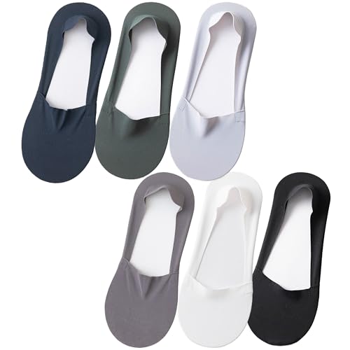 No Show Socks for Men Loafer Sneakers Low Cut Cotton Socks With Non Slip Grips 6 Pairs for US Size 5-10(Assorted B) 6