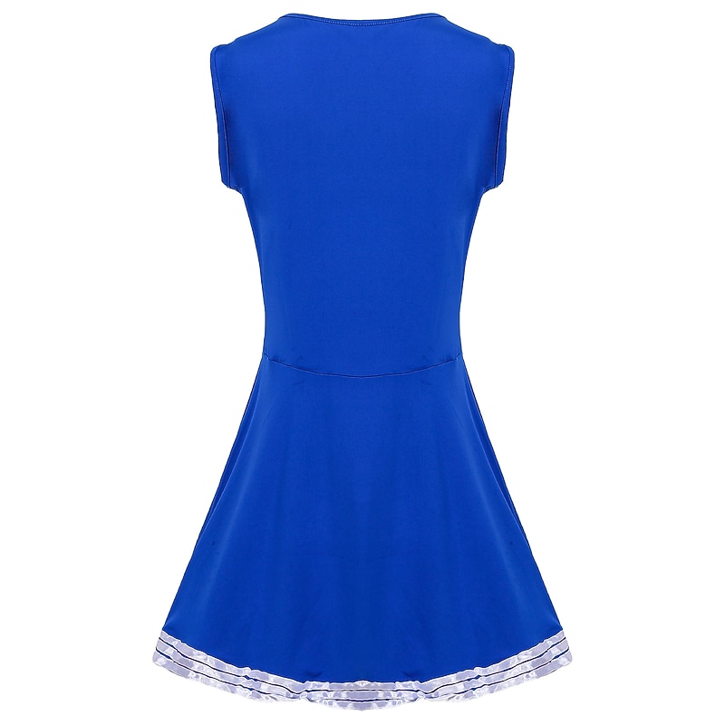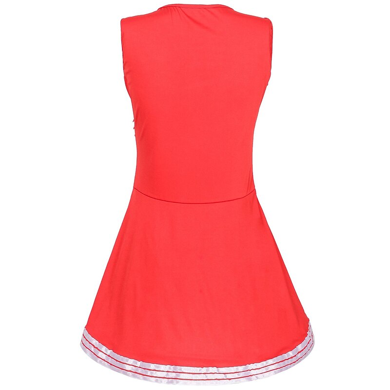 : Crafted from high-quality polyester, this cheerleader carnival costume offers durability and comfort, with a micro-elastic quality that ensures easy movement and flexibility. The fabric is designed to withstand energetic performances, making it ideal for long-lasting wear.