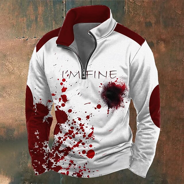 $28.99 - Halloween Men's Graphic Blood Splatter Blood stains Sweatshirt Exaggerated Gothic Long Sleeve High Neck Party Club Red Blue Zipper Quarter Zip Fall Winter Designer 2025. Shop for cheap Halloween Hoodies & Sweatshirts online? Buy at lightinthebox.com on sale today!