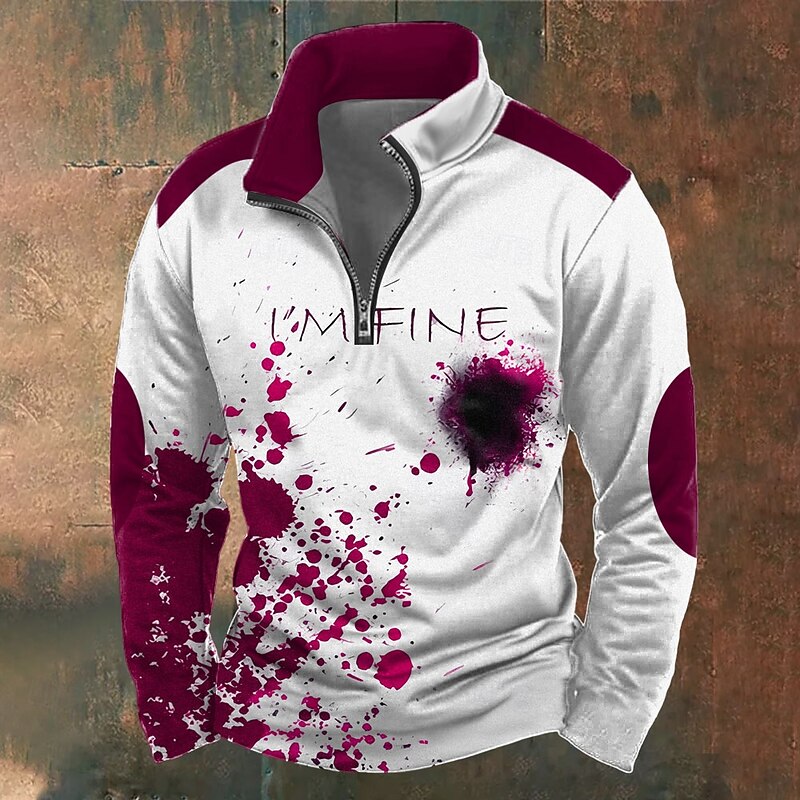 Halloween Men's Graphic Blood Splatter Blood stains Sweatshirt Exaggerated Gothic Long Sleeve High Neck Party Club Red Blue Zipper Quarter Zip Fall Winter Designer 7