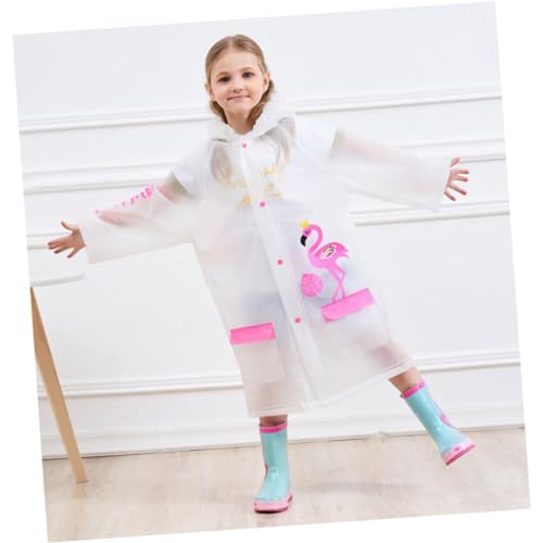Boy Girl's Cartoon Raincoat with Hood Lightweight Eva Poncho for Boys and Girls for Outdoor Activities School Camping and Theme Parks White 7