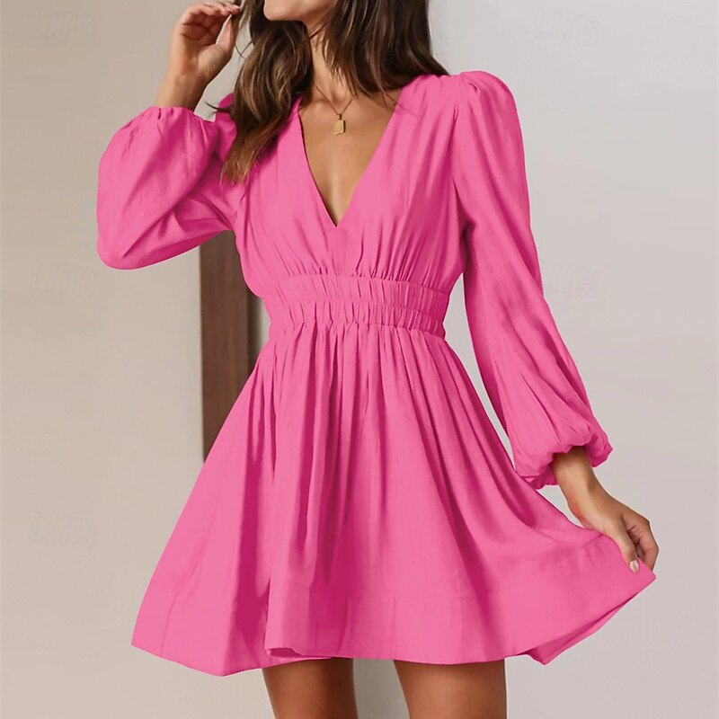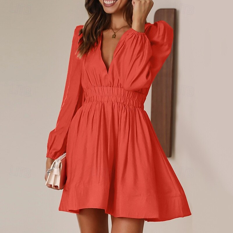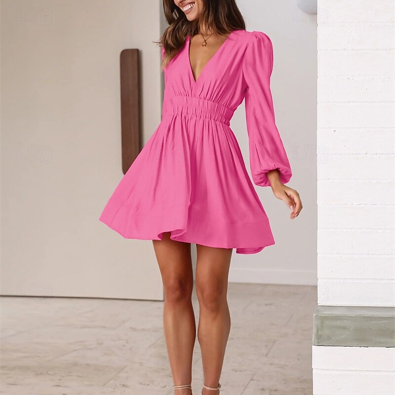 More information about Women's Mini Dress Black Dress Casual Dress Cocktail Dress Formal Dress Stylish Casual Vacation Daily Date Regular Fit Plain Long Sleeve V Neck Black Pink Blue Orange Summer