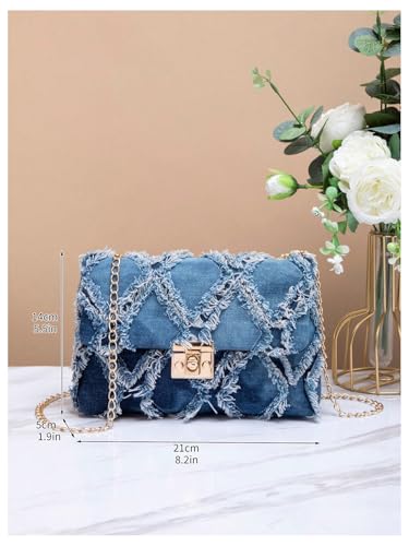 HOT ! QWINEE Women's Distressed Denim Crossbody Bag Twist Lock Quilted Handbag Mini Jean Purse with Chain Strap