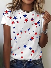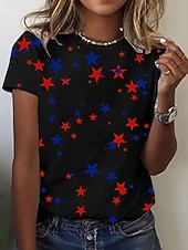 HOT ! Women's Patriotic T Shirt Graphic Star Vintage Stylish Classic Short Sleeve Crew Neck Regular Tops Daily Weekend Print Black White Pink Summer