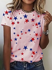 More information about Women's Patriotic T Shirt Graphic Star Vintage Stylish Classic Short Sleeve Crew Neck Regular Tops Daily Weekend Print Black White Pink Summer