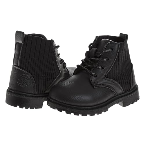 Beverly Hills Polo Club Girls Mid Top Boot - Comfort Construction LaceUp Boot - Black (5-10 Toddler) 5