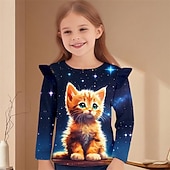 More information about Girls' 3D Cat Ruffle Tee Long Sleeve 3D Print Spring Fall Active Fashion Cute Kids 3-12 Years Crew Neck Outdoor Casual Daily Regular Fit
