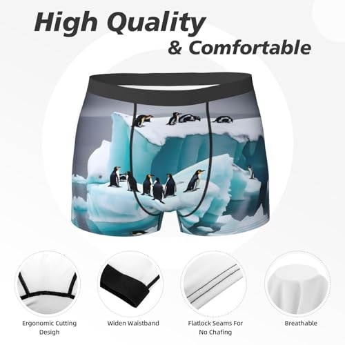 • Fiber Content: Crafted with a blend of polyester and elastane/spandex, these Penguins On The Iceberg Print men's boxer briefs offer a soft and comfortable feel against the skin, ensuring all-day comfort.