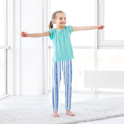 Navy Blue and White Stripes Kids Baby Girls Athletic Leggings Fashion High Waisted Pants Exercise