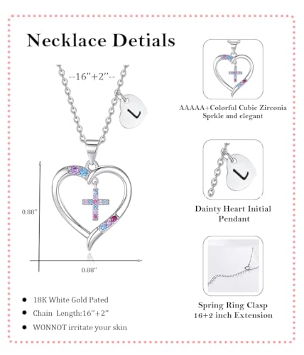 • ❤First Communion for 𝐆𝐢𝐫𝐥𝐬❤:This heart cross necklace will help your princess keep the knowledge of Christ's love close to her heart. A great for baptism gift, First Communion gifts, religious gifts for daughter,goddaughter gifts from godmother.