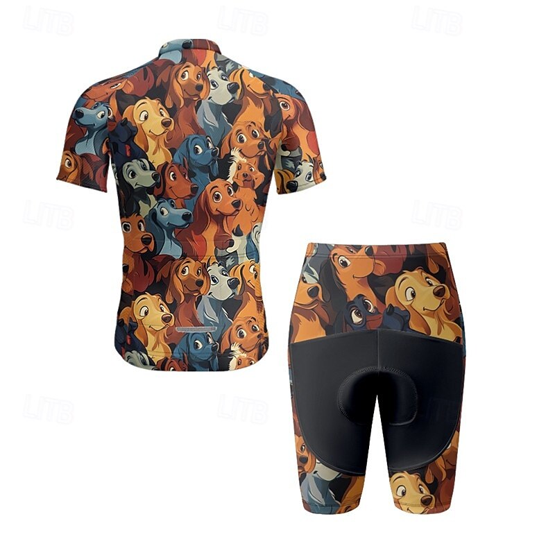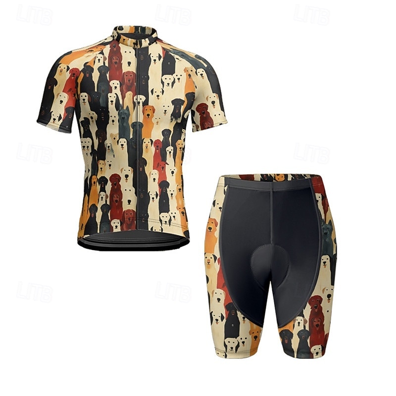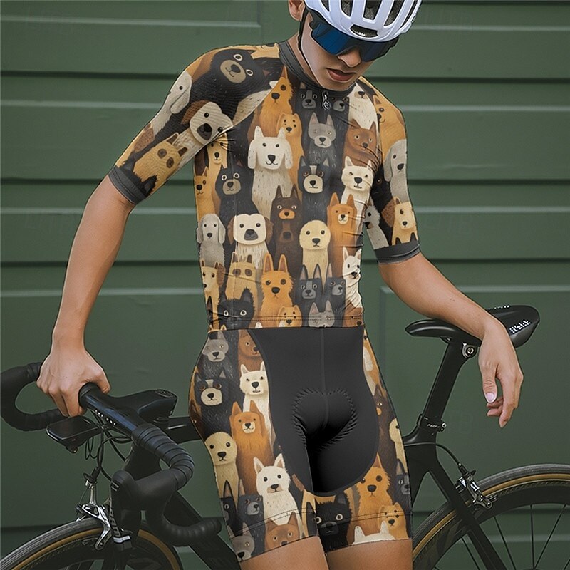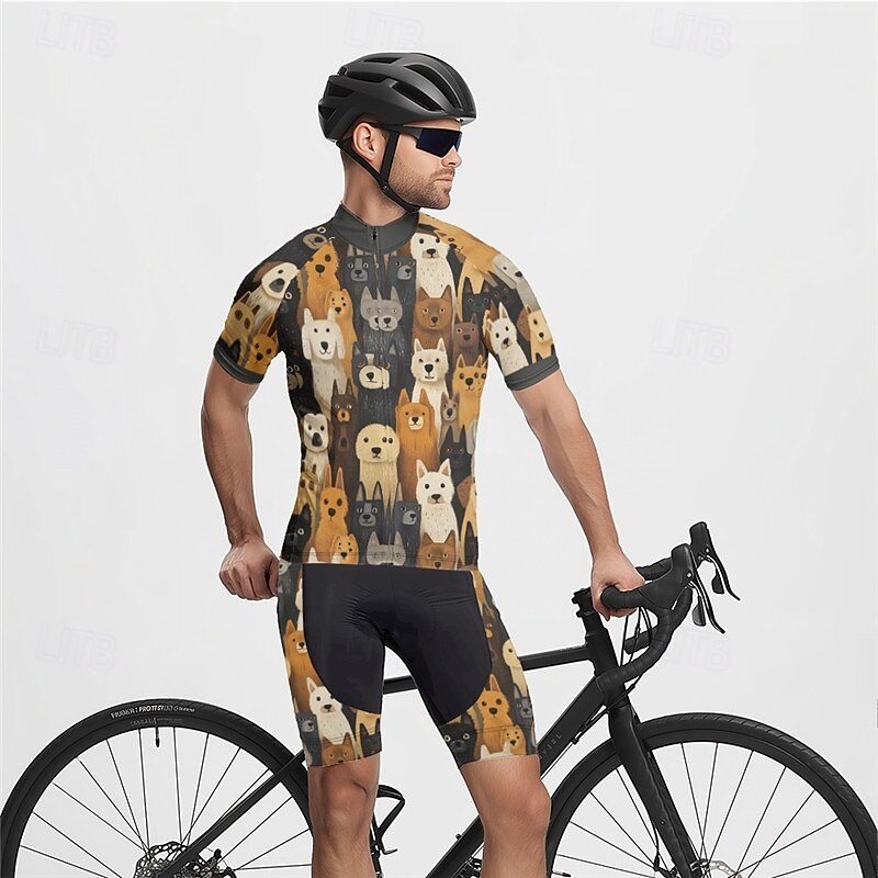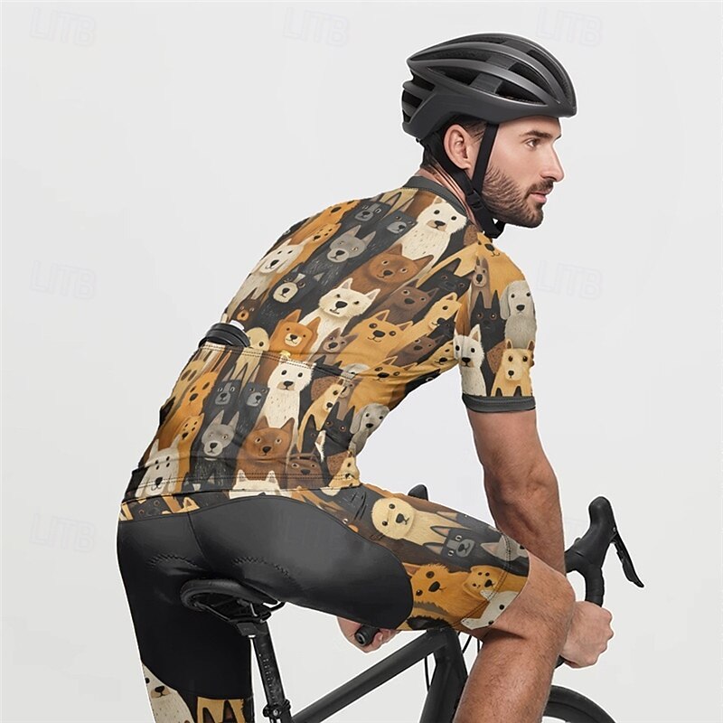 Men's Cycling Jersey with Shorts Dog Short Sleeve Bike Clothing Suit with 3 Rear Pockets Mountain Bike MTB Road Bike Cycling Front Zipper Sweat wicking Comfortable Breathable Sports Black Yellow Red 30