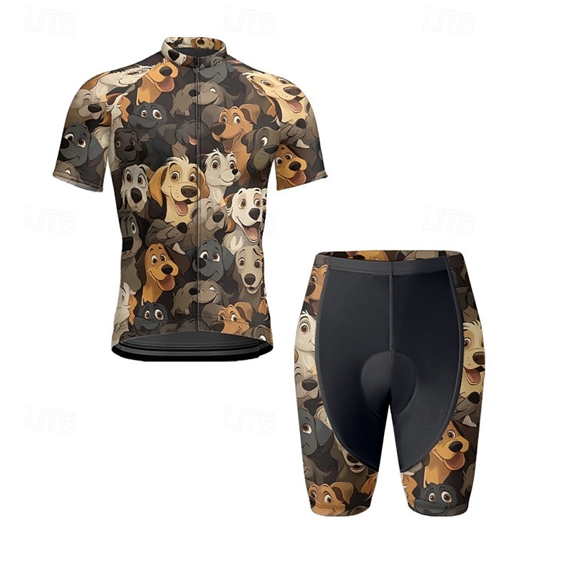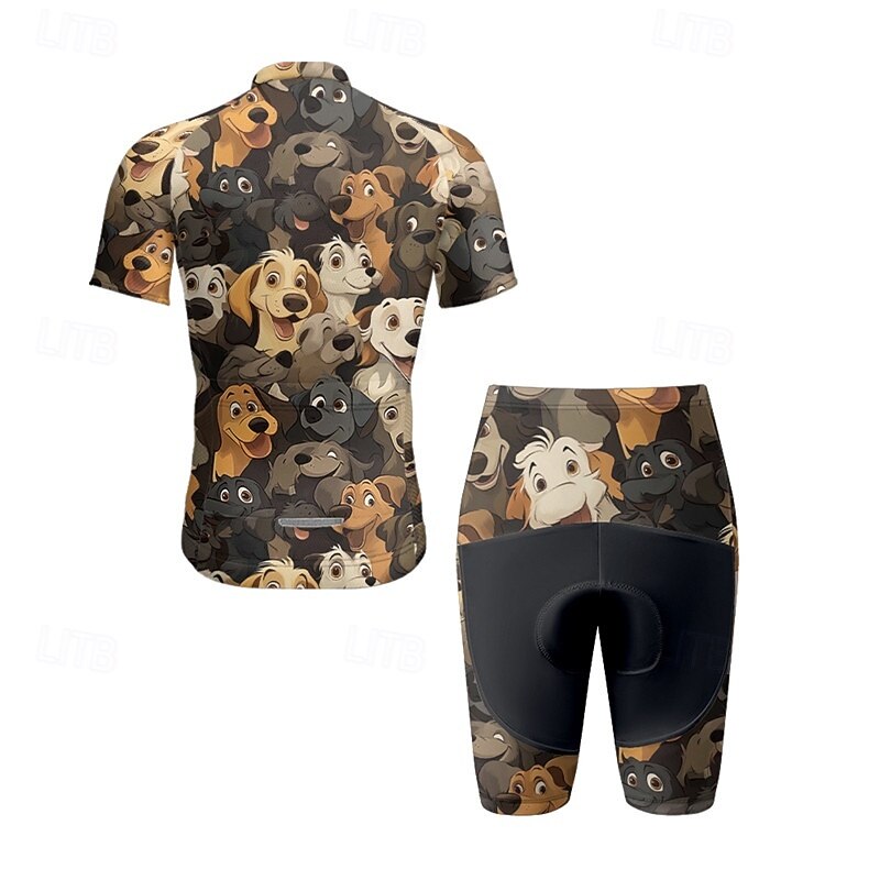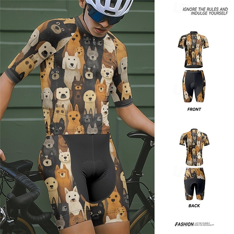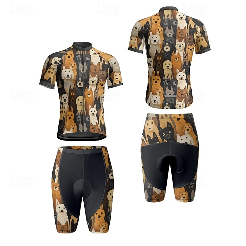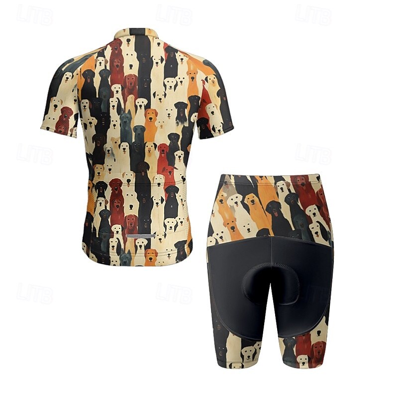 Men's Cycling Jersey with Shorts Dog Short Sleeve Bike Clothing Suit with 3 Rear Pockets Mountain Bike MTB Road Bike Cycling Front Zipper Sweat wicking Comfortable Breathable Sports Black Yellow Red 30