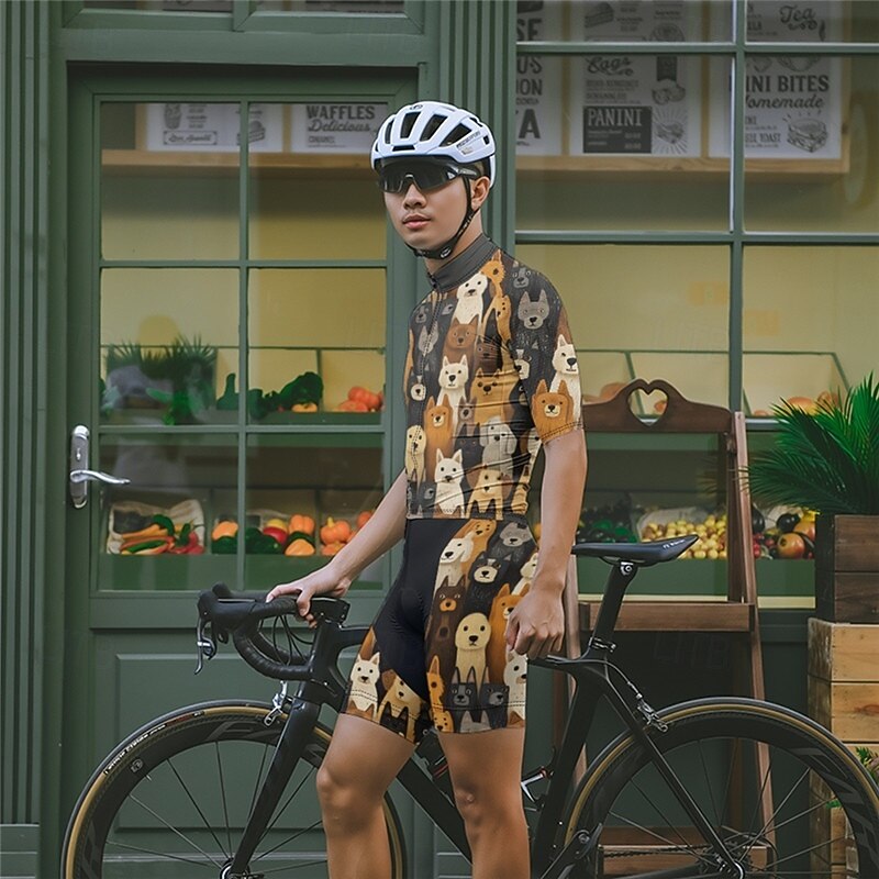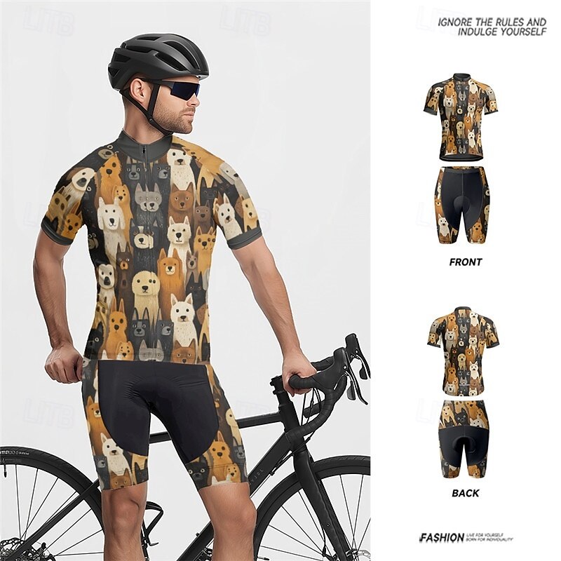 Men's Cycling Jersey with Shorts Dog Short Sleeve Bike Clothing Suit with 3 Rear Pockets Mountain Bike MTB Road Bike Cycling Front Zipper Sweat wicking Comfortable Breathable Sports Black Yellow Red 21
