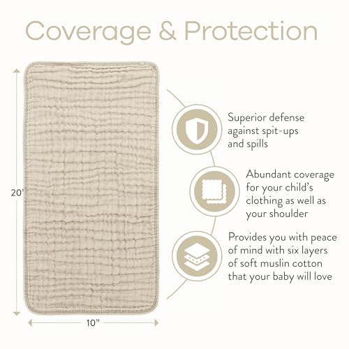 • 6 Layers of Thickness and Large Size: Our burp cloths feature 6 layers of absorbent muslin cotton, providing superior protection against spills and spit-ups. At 20x10 inches, they offer ample coverage for your baby's clothing and your shoulder. The extra layering adds thickness and durability, making them long-lasting through multiple uses and washes. Keep your baby clean and dry with our muslin burp cloths.