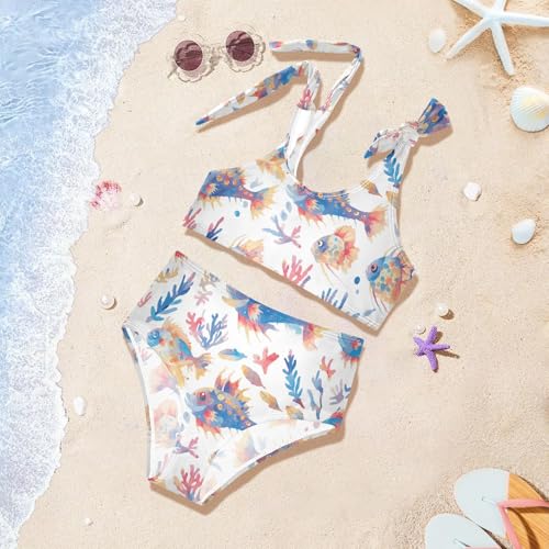 HOT ! KLL Puffer Hawaiian Fish and Seaweed Girls' Two Pieces Bikini Set Scoop Neck Swimsuits Swimwear Adjustable Strap