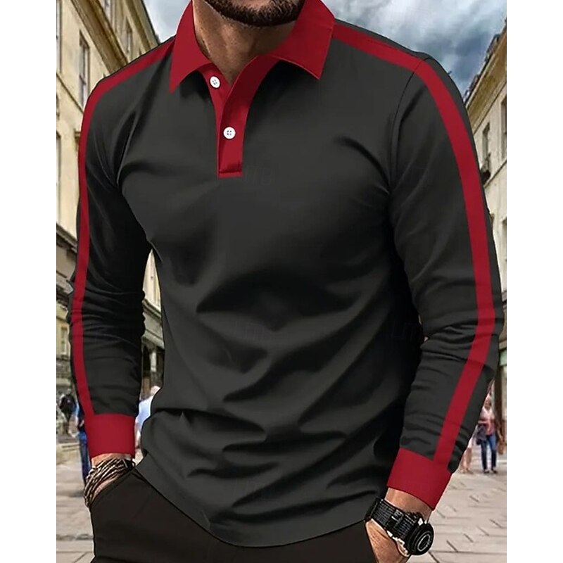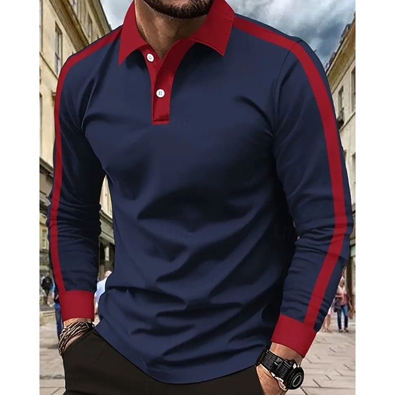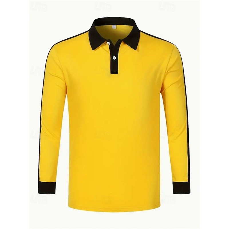 More information about Men's Golf Shirt Golf Polos Shirts Work Casual Lapel Long Sleeve Basic Modern Color Block Patchwork Buttons Spring & Fall Regular Fit Wine Black Yellow Navy Blue Golf Shirt