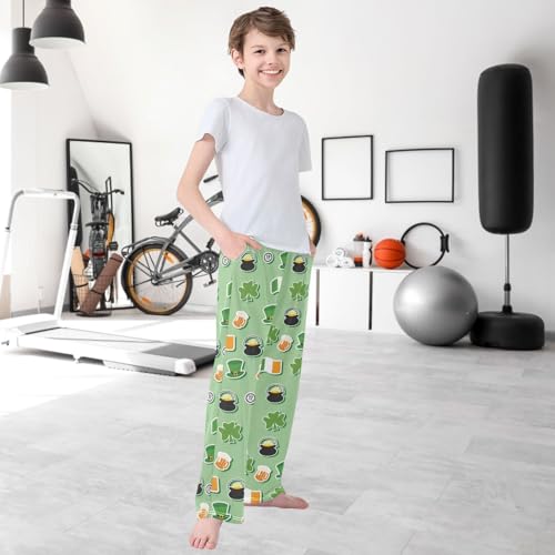 HOT ! Boy's Pants St Patricks Hat Clover Ireland Flag Jogger Pants Elastic Waist Long Bottoms Trousers with Pockets 6-14Y
