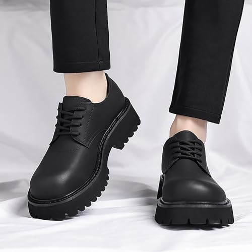 Men's Black Leather Platform Block Heel Oxford Shoes Classic Wide Round Toe Lace Up Comfort Anti-Slip Lug Sole Chunky Heel Derby Shoes for Wedding Party Business Office Work 6