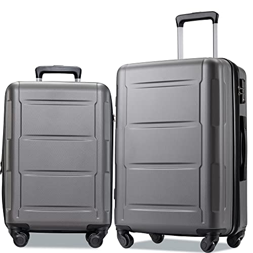 Expanable Spinner Wheel 2 Piece Luggage Set ABS Lightweight Suitcase with TSA Lock 20inch+24inch, Dark Gray As Shown, One Size 2
