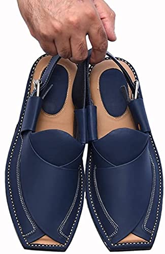 Men's Peshawari Chappal Traditional Handmade Leather Sandal Kaptan Chappal - Flip Flop Double Sole Casual Comfort Shoes 5