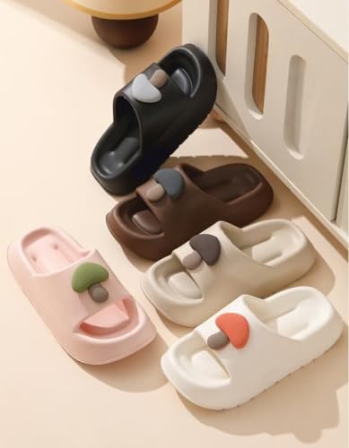 Pillow Slippers for Women and Men Non Slip Quick Drying Shower Slides Bathroom Sandals ,Ultra Cushion ,Thick Sole(Size:38-39,Khaki) 03 5