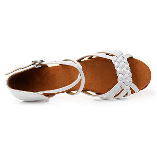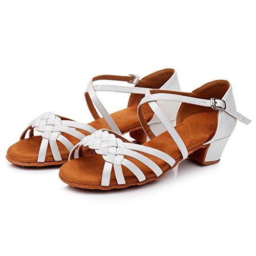 YKXLM Girls Latin Dance Shoes Kids Low Heels Tango Salsa Ballroom Practice Dance Shoes, 1208,White, 4.5 M Little Kid 5