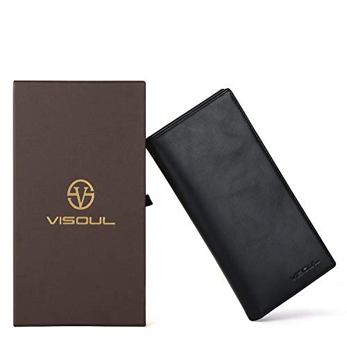 HOT ! VISOUL Leather Checkbook Cover Wallet for Men with RFID Blocking, Mens Long Bifold Cash Tall Wallet with 12 Credit Card Slots 1 ID Window (Black)