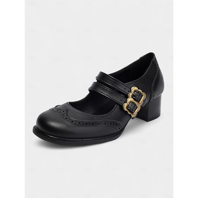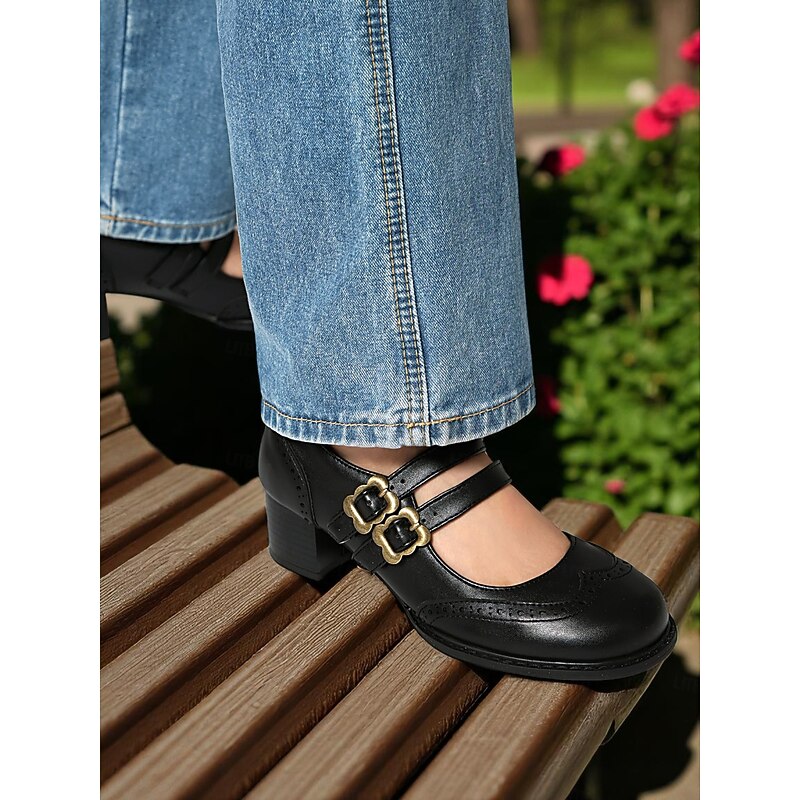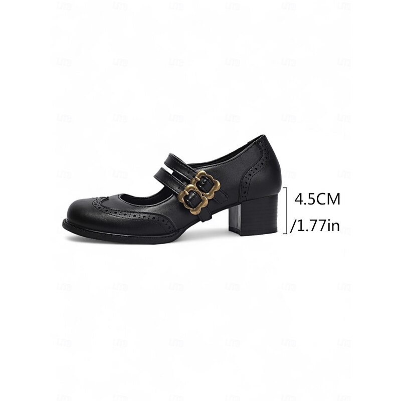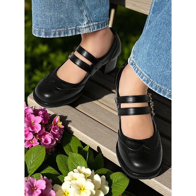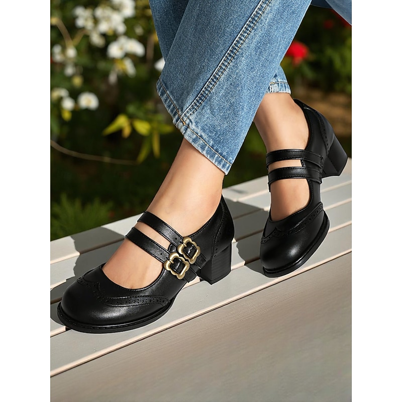 Highlights - High-quality PU upper material - Stylish synthetic leather lining - Chic buckle embellishment - Comfortable chunky heel design - Classic round toe shape - Durable rubber outsole - On-trend Brogue style for 2024