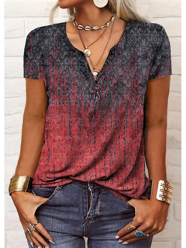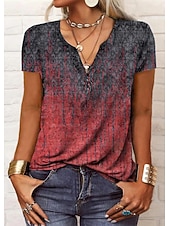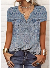 More information about Women's T Shirt Henley Shirt Graphic Paisley Vintage Basic Short Sleeve V Neck Regular Tops Daily Weekend Print Black Red Blue